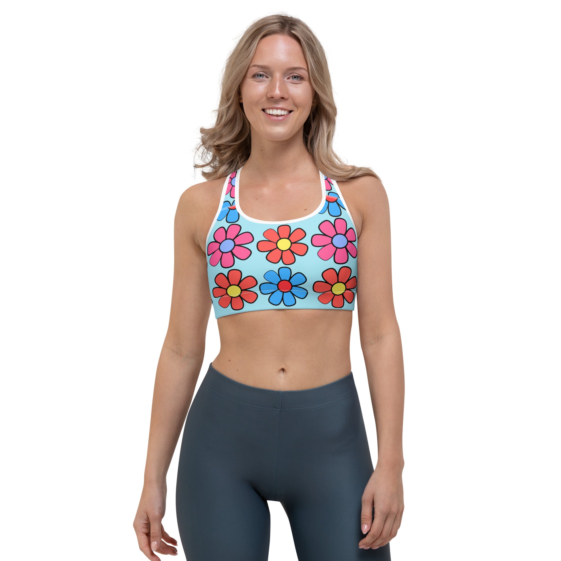This gorgeous sports bra is made from moisture-wicking material that stays dry during low and medium intensity workouts. The bra has support material in the shoulder straps, double layer front, and a wide elastic band to ensure constant support.