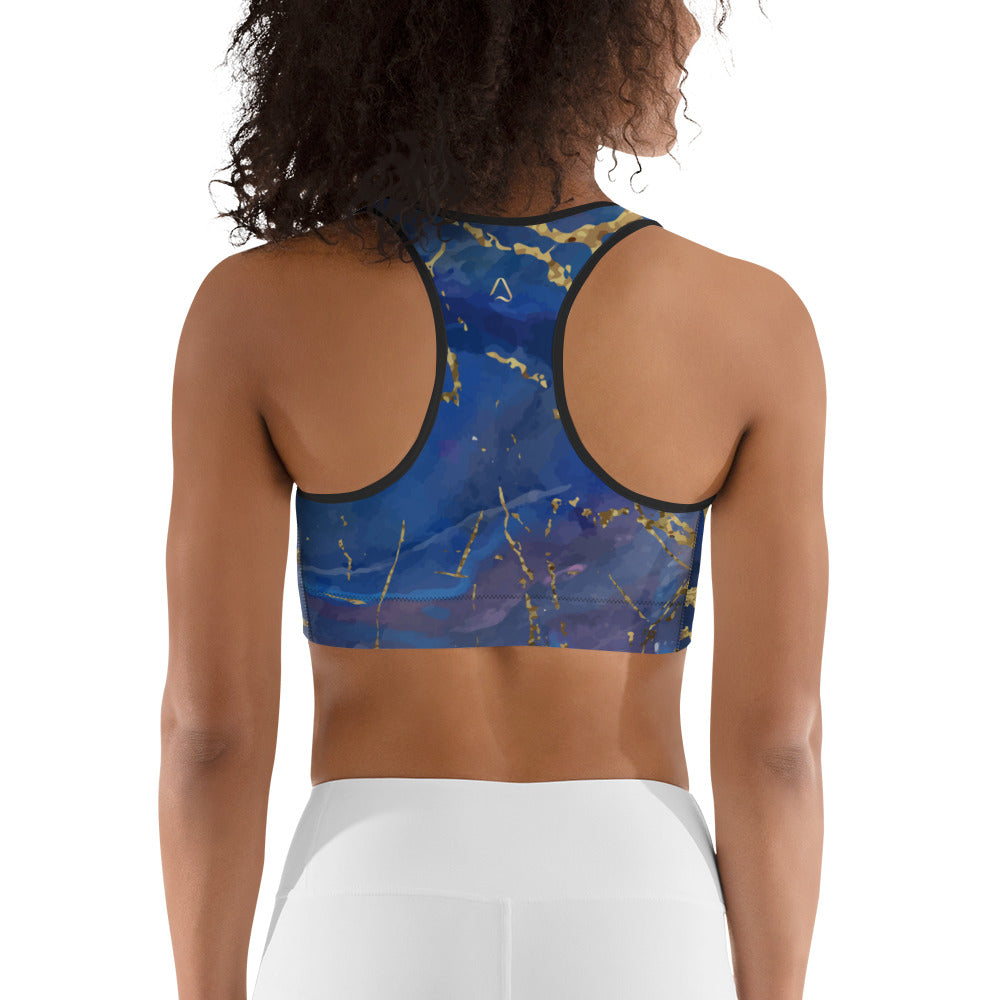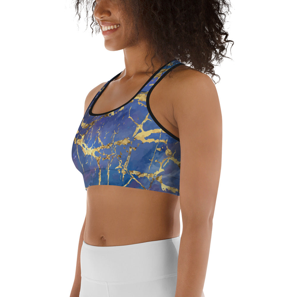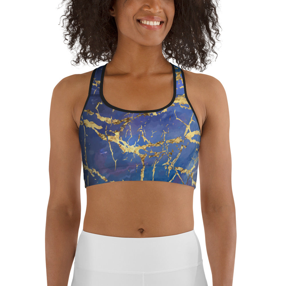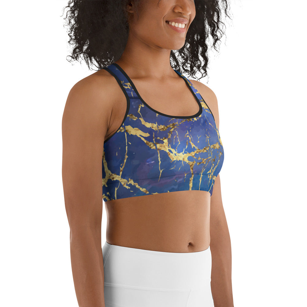 This gorgeous sports bra is made from moisture-wicking material that stays dry during low and medium intensity workouts. The bra has support material in the shoulder straps, double layer front, and a wide elastic band to ensure constant support.