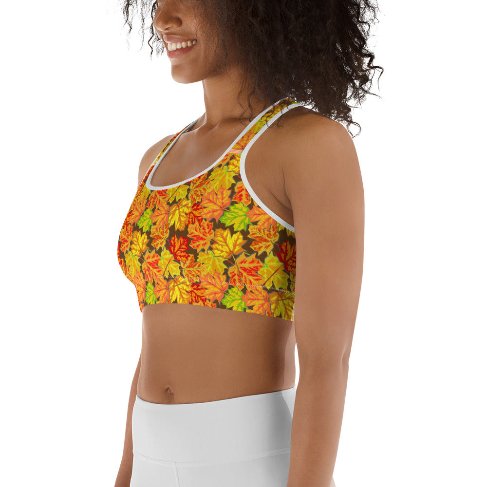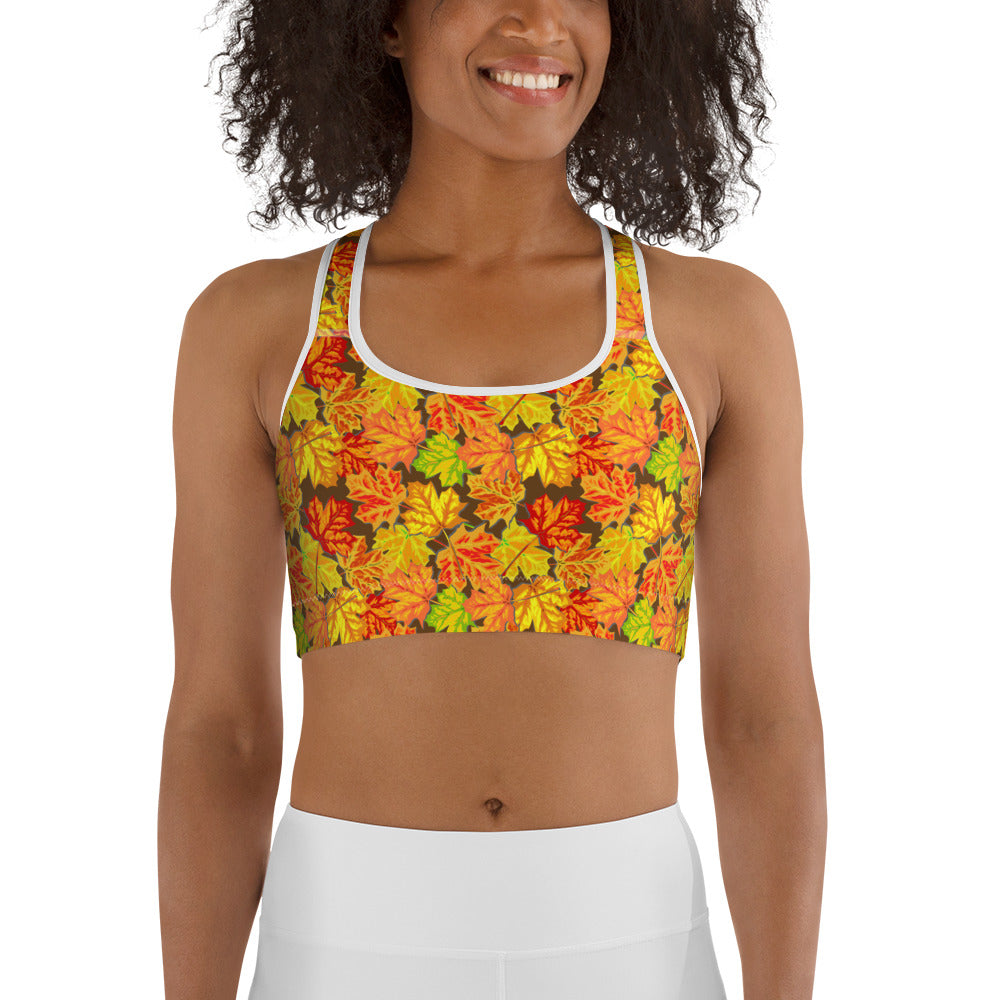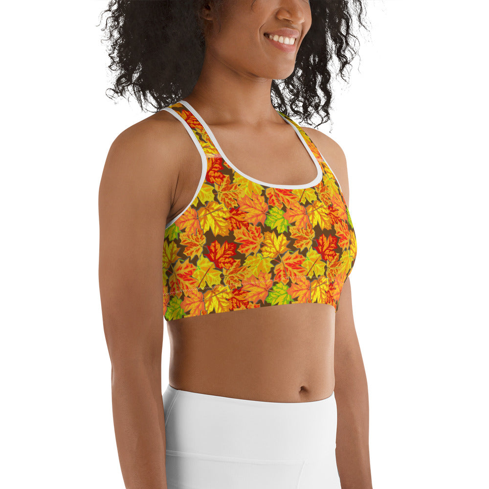Fallen Fall Leaves Yoga Sports Bra