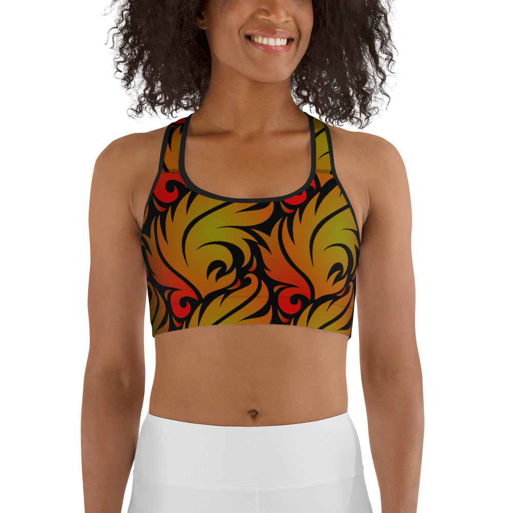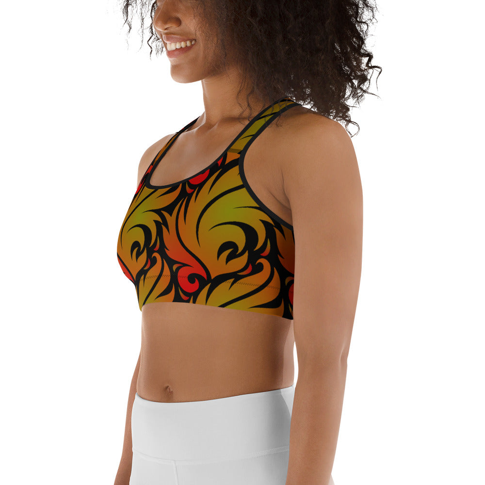 This gorgeous sports bra is made from moisture-wicking material that stays dry during low and medium intensity workouts. The bra has support material in the shoulder straps, double layer front, and a wide elastic band to ensure constant support.
