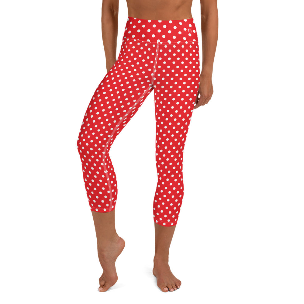 Winter White Polka Dots Yoga Capri Leggings