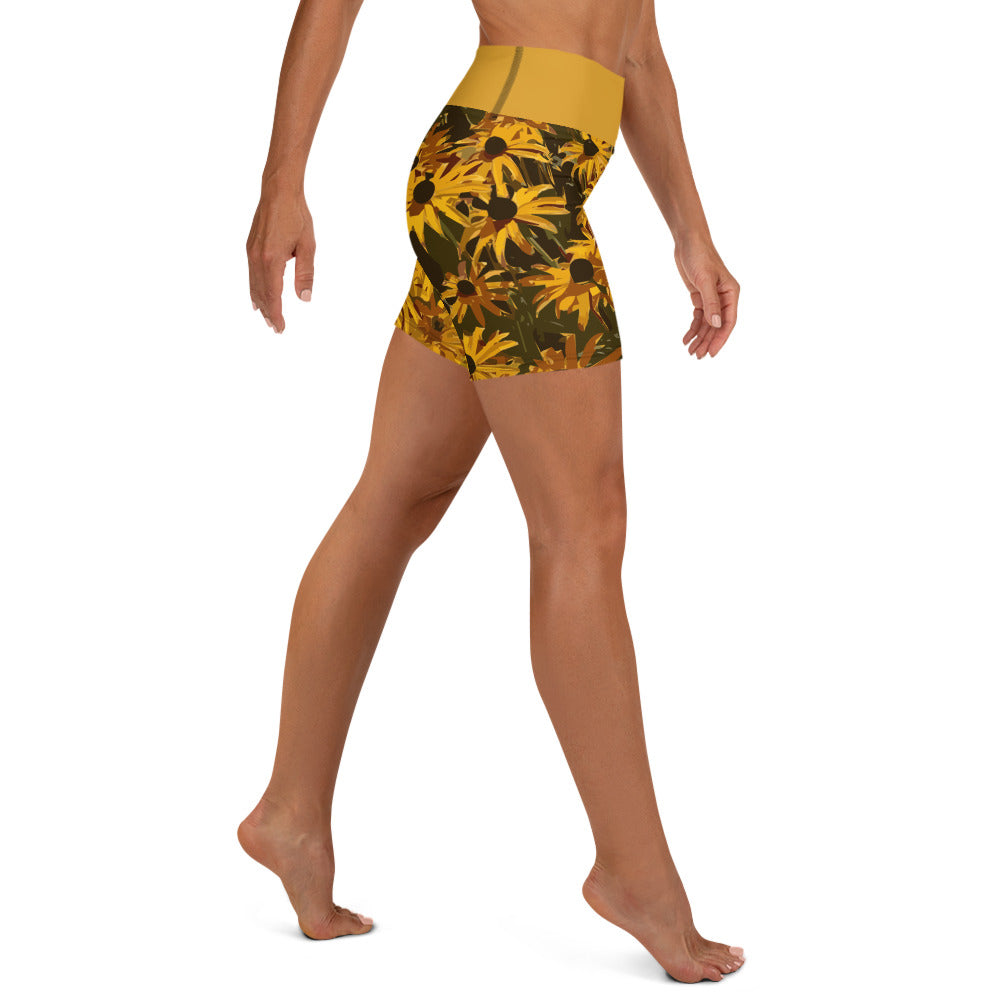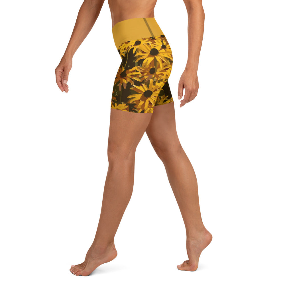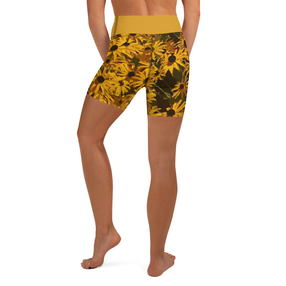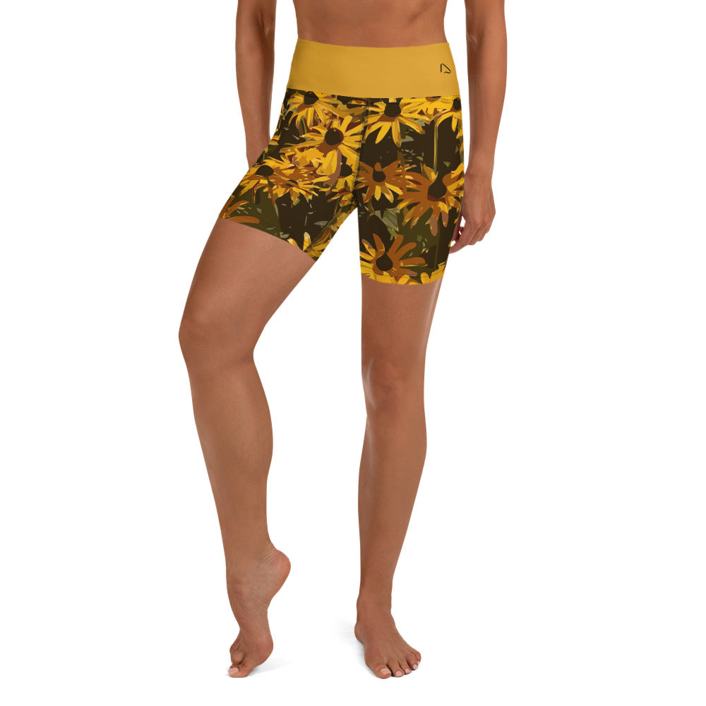 Sunflower Floral Yoga Shorts